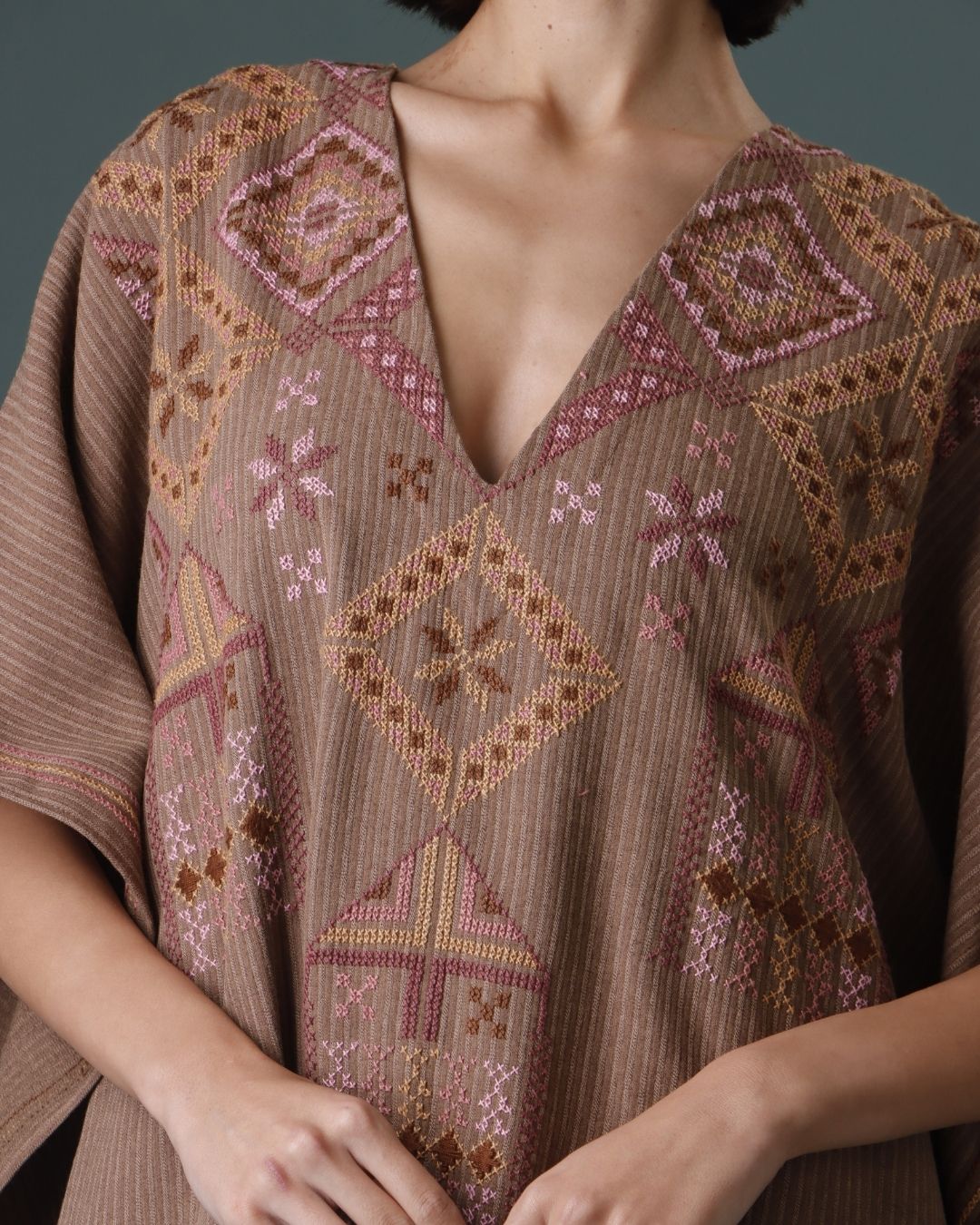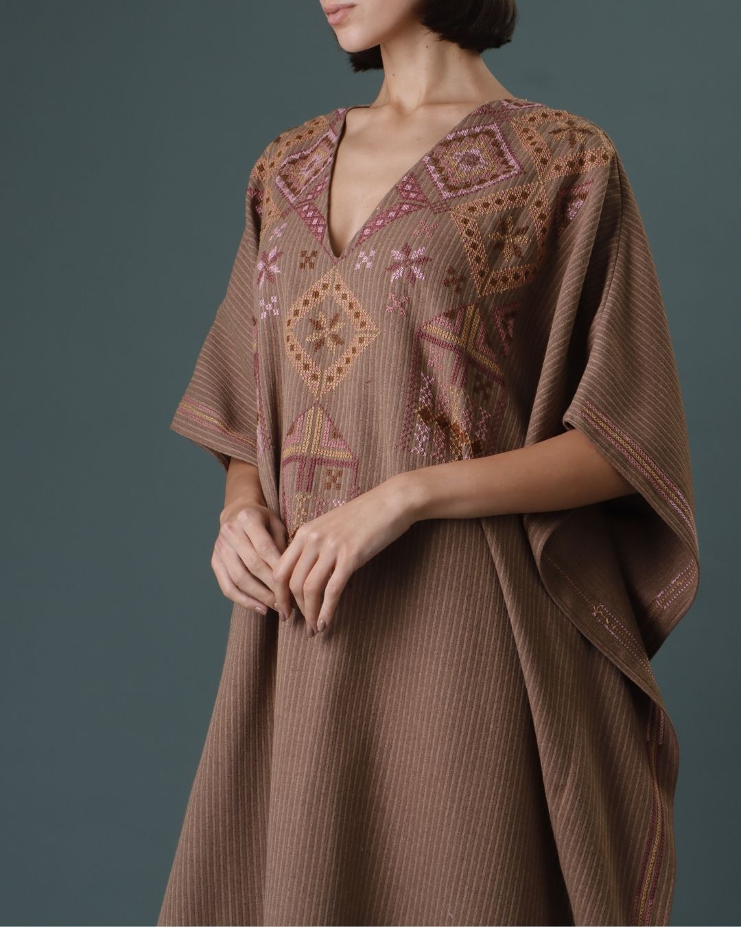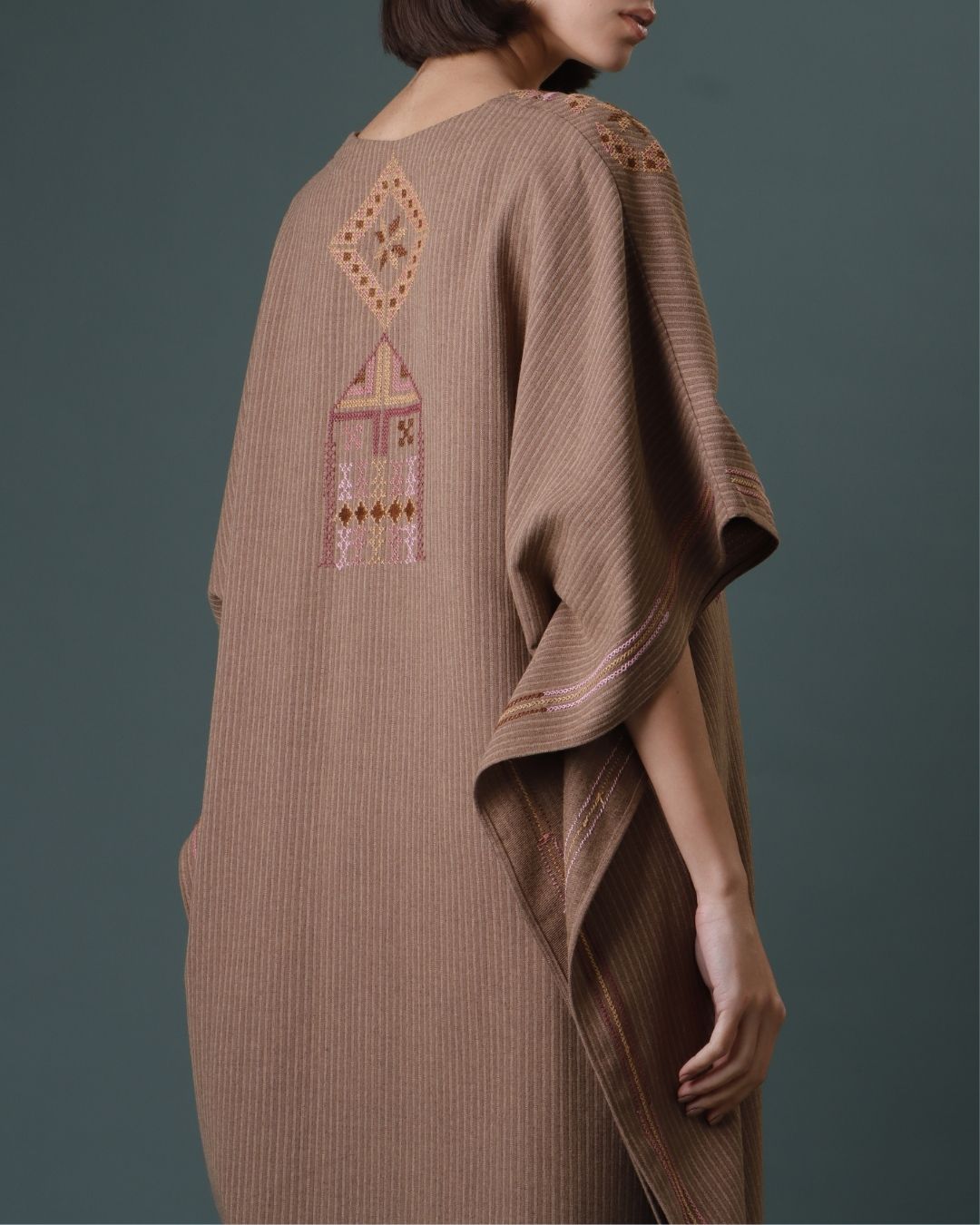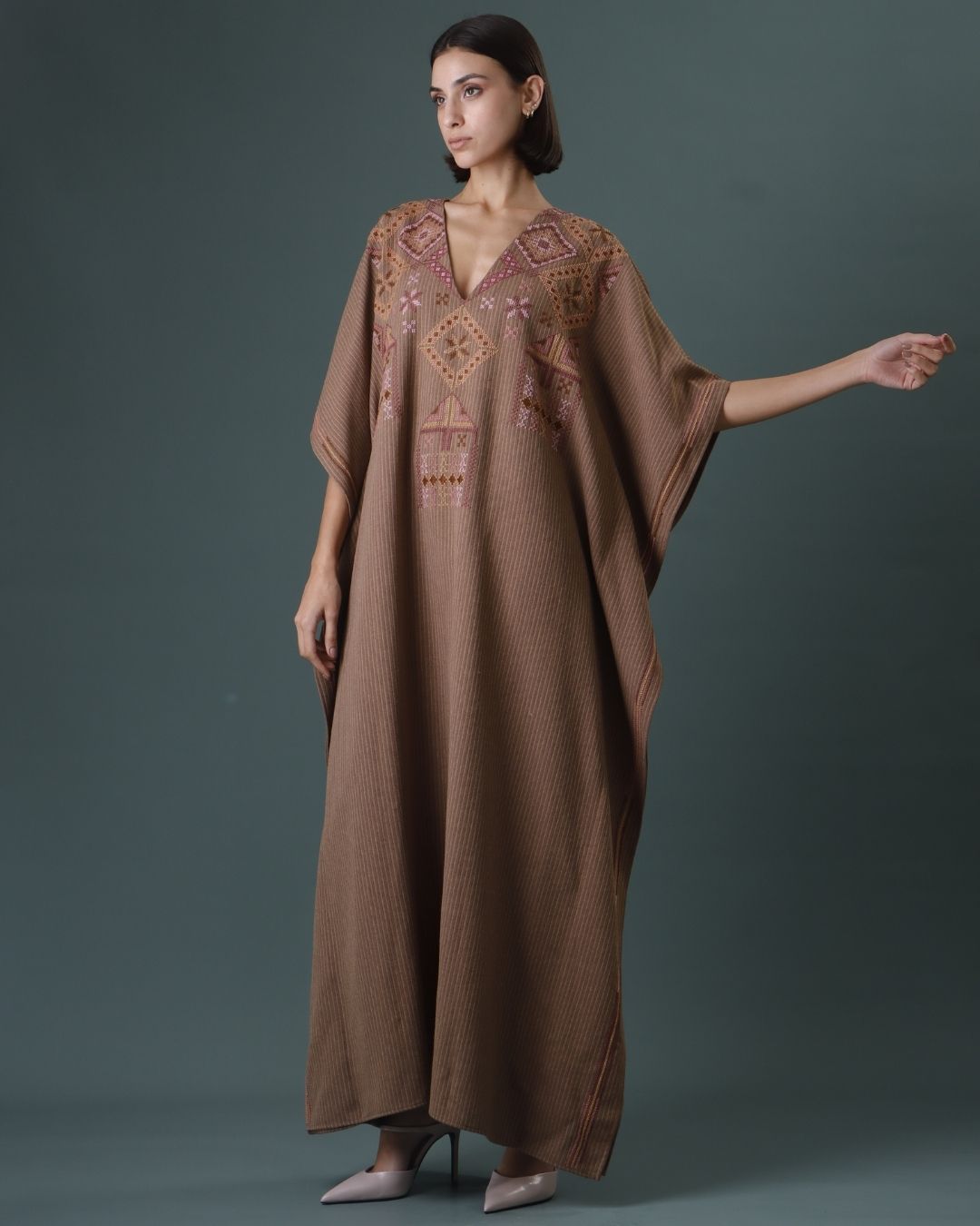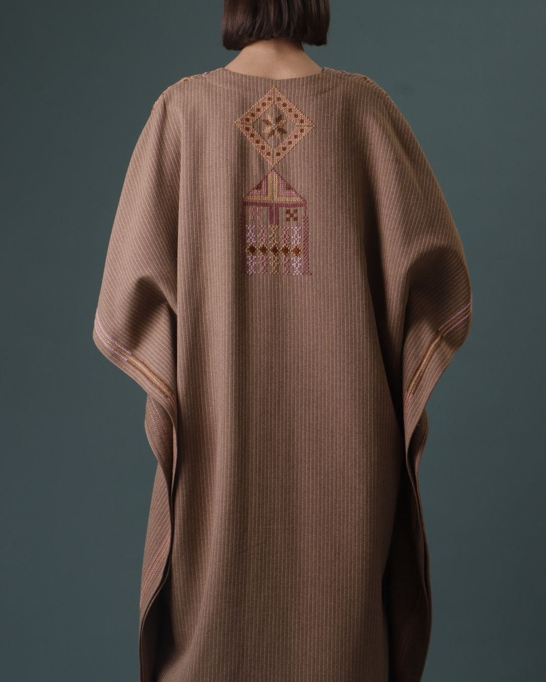 عباية تجمع بين الكلاسيكية والعصريةمطرزة يدويًا بزخارف من الخليلمصنوعة من الكتان