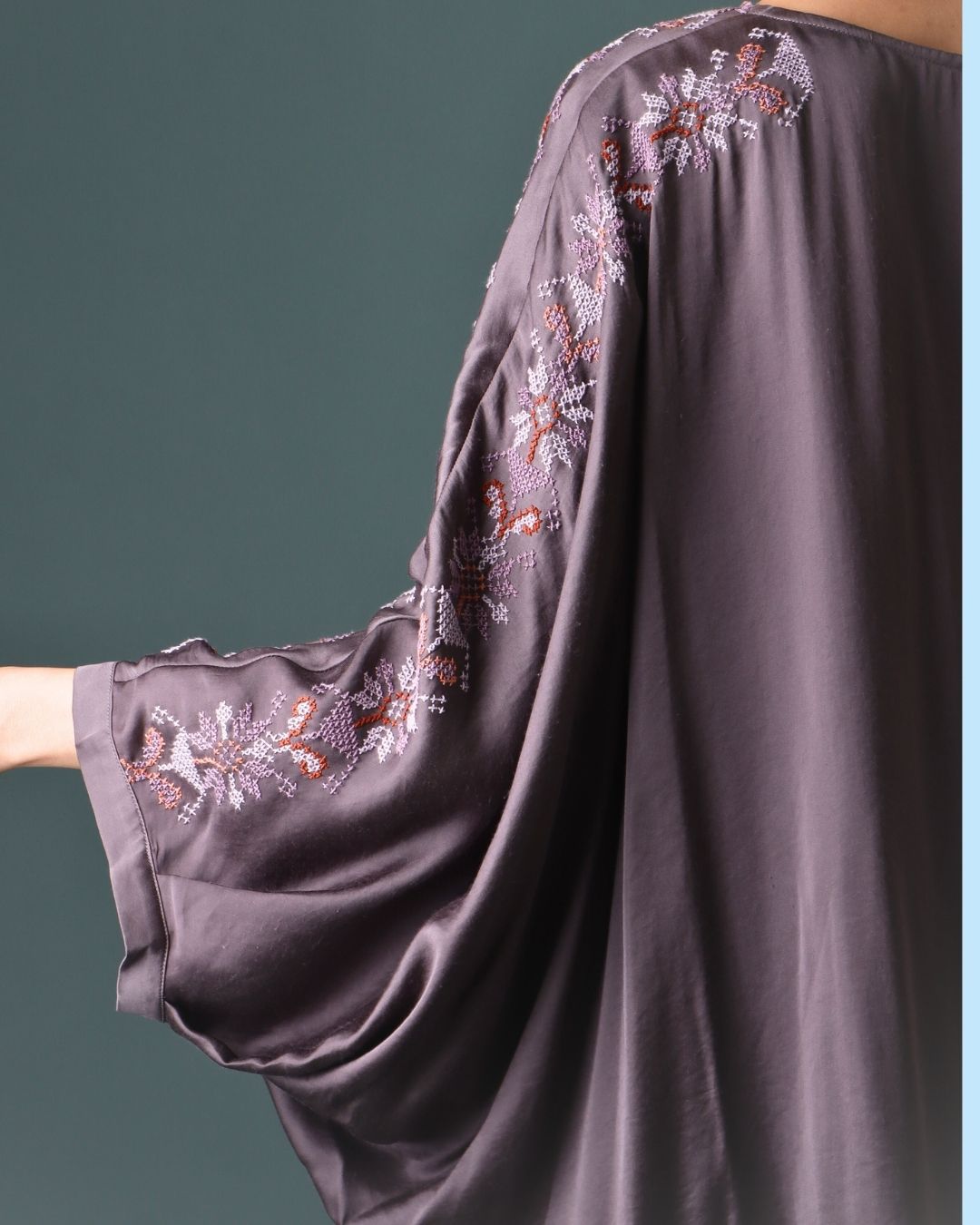 تمتعي بأناقة راقية مع هذه البلوزة الحريرية، حيث يمتزج التطريز الفلسطيني التقليدي مع التصميم المعاصر. تفاصيل الخياطة اليدوية مستوحاة من فخاريات رام الله الزهرية الشهيرة، بينما يضفي قماش الكريب الساتان وقصته الانسيابية لمسة جمالية أنيقة. خيار راقي لمن يقدرون الحرفية الأصيلة ورواية القصص الثقافية المندمجة في خزانة ملابسهم.